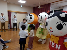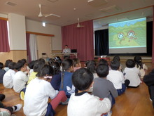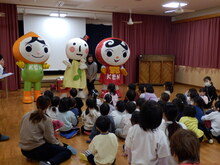 寒さが深まる中、本年度第4回目の人権教室を玉川こども園で開催しました。はじめに人権擁護委員や園の先生から園児に人権についてわかりやすくお話をされました。その後、人権擁護委員によるデジタル紙芝居「ぐらぐらもりのおばけ」が披露され、たまちゃんと一緒にじんけんまもるくん・あゆみちゃんが登場すると、園児たちは大喜びでした。人権擁護委員が「みんなにとって大事なものは何ですか?」と語りかけると、園児は真っ先に「いのち」や「おともだち」と答えてくれました。人権教室でこのように答えてくれるので、安心しています。最後にクラスごとに人権擁護委員と「にこにこ写真」を撮り、心温まる楽しいひと時を過ごしました。