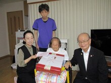 14時20分 市内最高齢の女性107歳の方を訪問し、御長寿をお祝いしました。