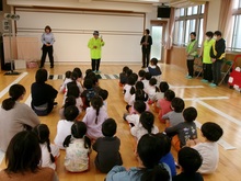 交通安全教室で、矢倉学区の代表の方から大事な話を聞きました。