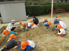 今年度初めての保育参観を実施し、朝の会や日頃楽しんでいる遊びを見てもらいました。保護者の方と一緒に製作遊びやゲームも楽しみました。その後はPTA総会や学級懇談会を開催し、園と家庭が連携しながらこどもたちの成長を見守っていく大切さを共有させていただきました。