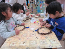 芋のツルを使ったリース作り☆4歳児