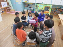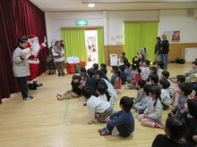 お楽しみ会を実施しました。職員による合奏やお話を楽しんだこどもたち。すると、どこからか鈴の音が……。こどもたちが心待ちにしていたサンタクロースさんがトナカイと一緒に登場!目をキラキラに輝かせ、大喜びのこどもたち。一緒にふれあい遊びをしたりプレゼントをもらったりして、嬉しい1日となりました。