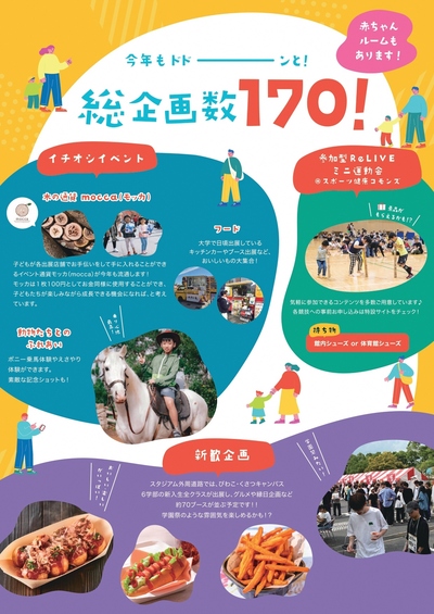 「アカデミック・サイエンス」「スポーツ」「健康」「パフォーマンス」「地域」「フード」「SDGs」の7つをテーマにした170の企画(出展等)を用意しております。