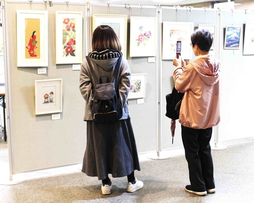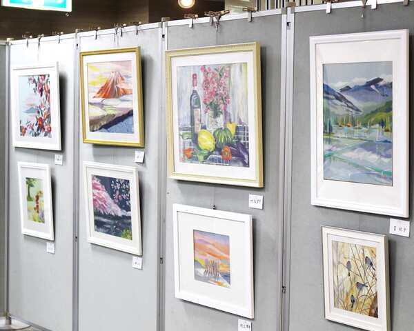 和紙ちぎり絵会員による作品約70点の展示