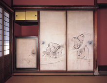 岸岱「寒山拾得図襖・戸袋」(草津宿本陣蔵)