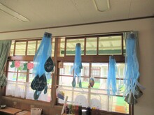 今年は梅雨入りが早いと言われましたね。第四保育所でも、室内から雨を眺める子どもたちの姿が見られました。「お外に行きたいなあ」とがっかりすることもありますが、この時期ならではの季節感を味わい、あめふりの日も楽しめるような環境やあそびを工夫していますので、紹介します。