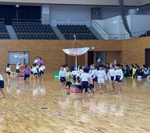 4歳児は大好きな昆虫の世界をイメージしたダンシング玉入れやサーキット、親子競技に取り組みました。自分たちが世話をしていたカブトムシやクワガタに届ける元気玉をみんなで集めたり、親子で運んだりして楽しんでいると、カブトムシとクワガタからお礼の手紙が届き、大喜びのこどもたちでした。