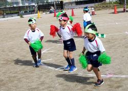 当日は、秋晴れの良い天気で、子ども達は、かけっこやダンス、バルーンなどの競技を精一杯、走ったり、踊ったり、友だちと力を合わせて取り組んだりしていました。