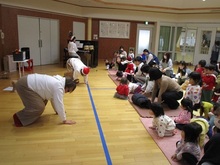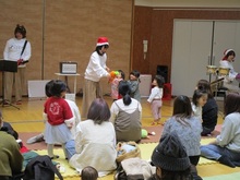 10回目のはらっぱは、ピアーチェさんによるクリスマスコンサートでした。初めはいつもと違う場所(遊戯室)で知らない方がいたことでドキドキした表情のこども達でしたが、優しい歌声や楽しいピアノの音色にだんだん気持ちがほぐれてきて、音楽に合わせて体を揺らしたり、手を動かしたりしていました。途中には体を動かす遊びもあり、笑顔がたくさん見られました。在園児(0,1,2歳児)のお友だちも一緒に参加して、みんなでクリスマスの歌やお話を楽しむことができました。