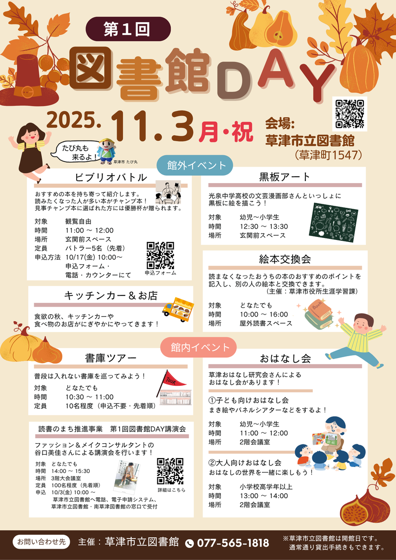 第1回「図書館DAY」を11月3日(月曜・祝日)に開催いたします。