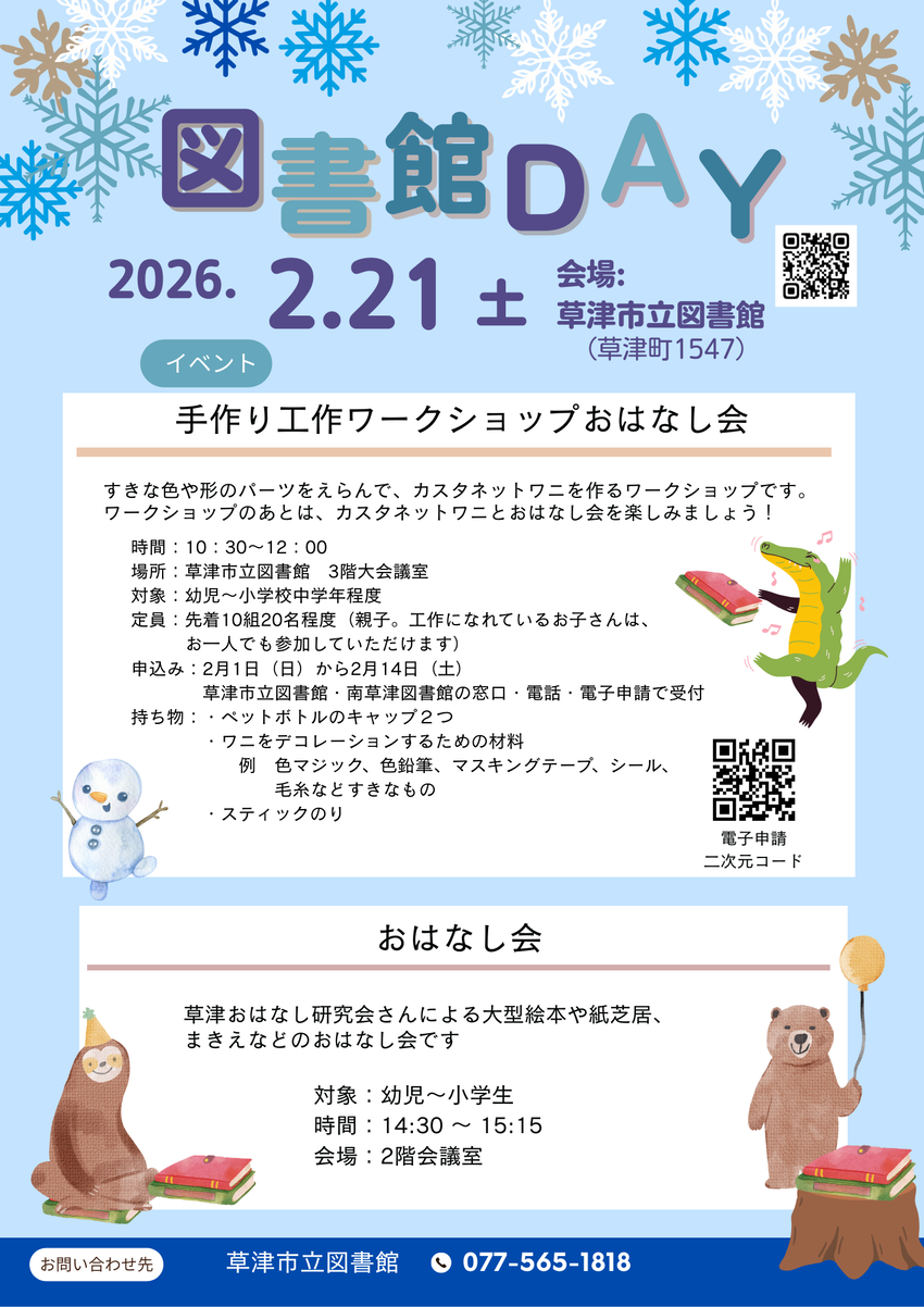 2月の「図書館DAY」を2月21日(土曜)に開催いたします。