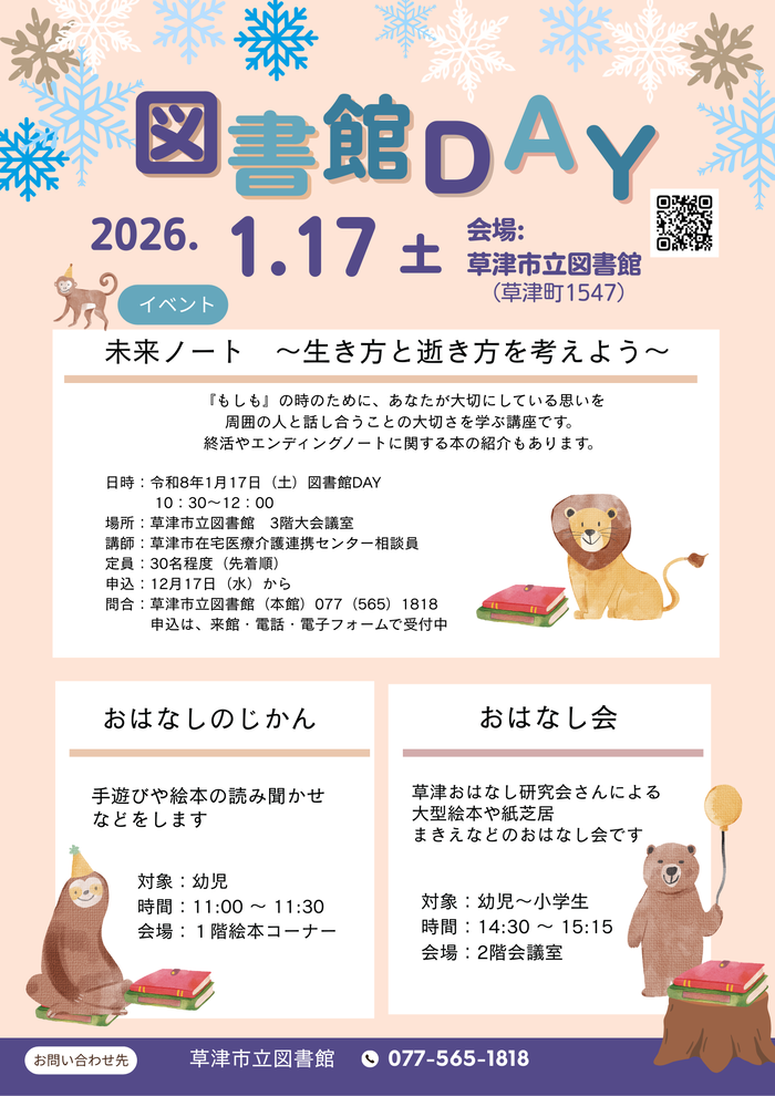 1月の「図書館DAY」を1月17日(土曜)に開催いたします。