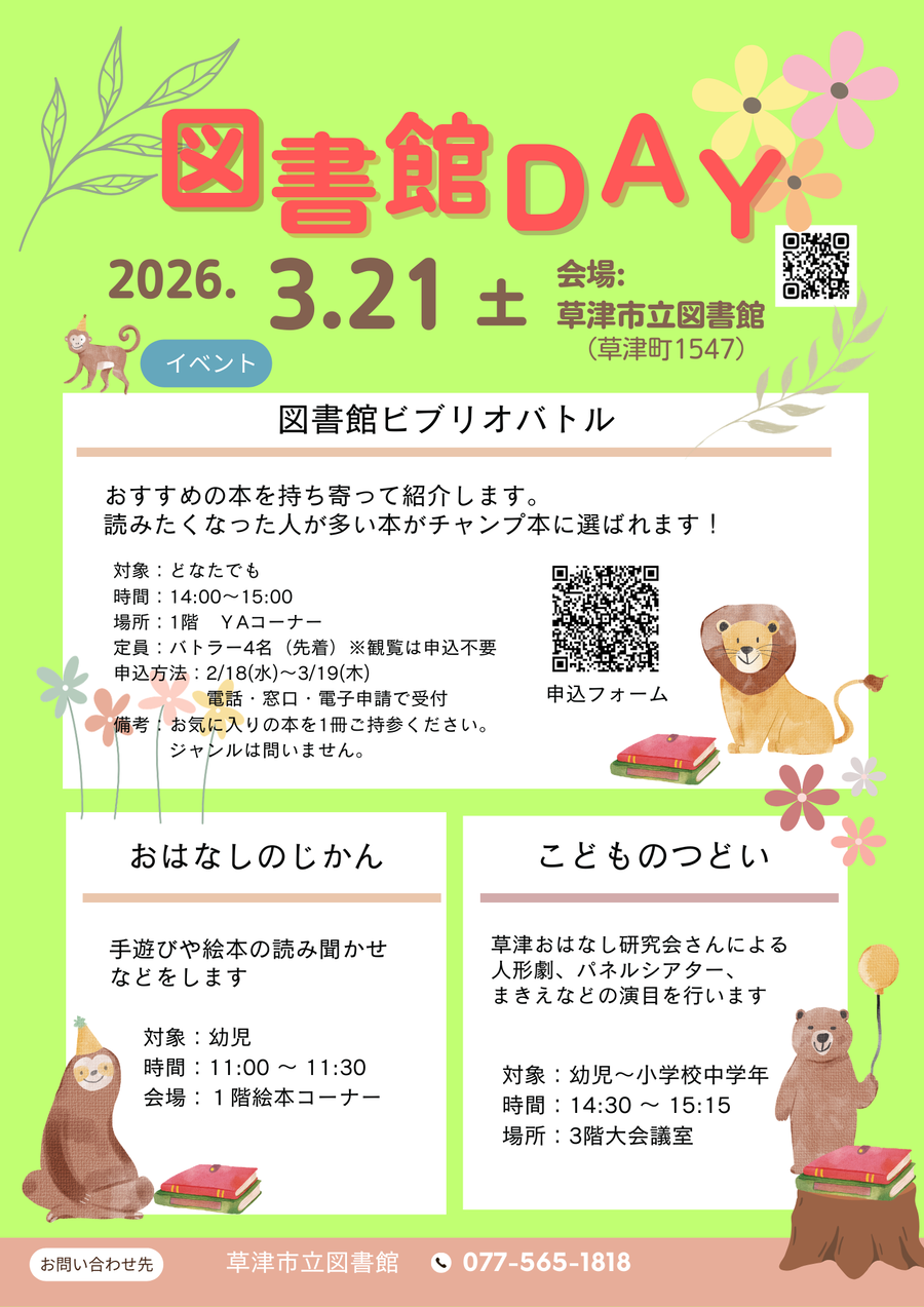 3月の「図書館DAY」を3月21日(土曜)に開催いたします。